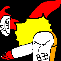 肉パンマン 「な、ならんっ!!やめるんだ。 お前にド○ンちゃんを倒す事は出来んのだ!」 食パ○マン 「てめぇ、まだいやがったのかよ!! いい加減ウザッたいんだよ、寝てな!(バキッ) んな事、闘ってみればわかるってんだよ。」 |