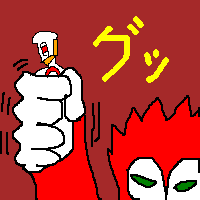 ド○ン 「う・・・うぅっ、私死ぬのかしら・・・。」 食パ○マン 「いやいやっ、安心せい・・・峰打ちじゃ(笑) 急所は外しておいた・・・死ぬ事はないはずだ。 それよりも聞きたい事がある。 何故こんな事をしたか教えてくれないか!?」アッヒャ |