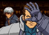 マキシマ「少し手こずったな。無事か?」K’「炎がおさまらない。オレはいいがお前腕が焼けるぞ」