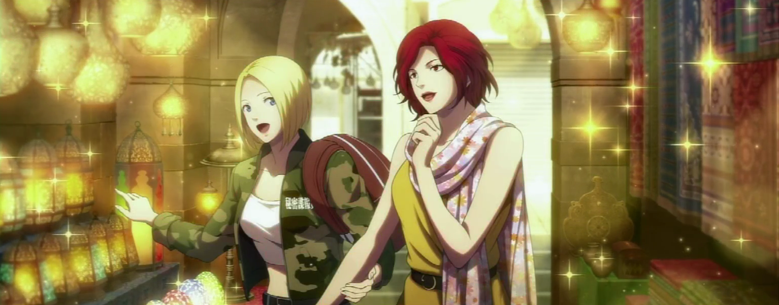 KOF'15 エンディング - エージェントチーム エンディング - ※ ヴァネッサ:海外出張の特典と言えば 地元でのショッピングよね〜♪ ヴァネッサ:というワケで レッツ観光! マリー・・・・・・あっ見て このランプ綺麗じゃない? BACK HOME